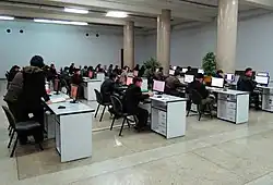 The first "internet café" (or "intranet cafe") in North Korea was opened in Pyongyang, where one may access the country's intranet services. It opened in 2002, near Kwangbok station, and has about 100 computers.[55][56][34] It was opened by a Seoul company named Hoonnet, and a North Korean company named Jangsaeng General Trade Company.[9][57] These cafes, also known as "PC rooms" or "Information Technology Stores", began appearing across North Korea as soon as the early 2000s, and can be accessed for a fee.[11][33][18] The cafes provide other paid services as well, such as computing classes. As of 2005, the price for accessing these services was considered prohibitively expensive for the average North Korean citizen, according to Daily NK.[58]