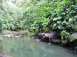 The Lézarde is a river of Guadeloupe. 25.4 kilometres (15.8 mi) in length,[1] it is one of the most important rivers in Guadeloupe, which flows into the town of Petit-Bourg and into the Caribbean Sea on the east coast of the island. It bears its name from the way it winds between rocks and the rainforest. The source of the river is in Merwart, at 564 metres (1,850 ft) above sea level, near Icaques, in the municipality of Petit-Bourg. There are sugarcane plantations in the vicinity.[2]