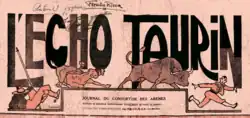 L'Écho taurin was a publication from Béziers, France which called for support to 'bull-fighting and southern freedoms'. It was founded as a weekly newspaper in 1882. In 1932 it became a seasonal publication. In the 1930s, its director was J. Rodriguez.[1]