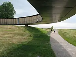 On the source of his inspiration, Prost explains, "I was thinking about the rings you make when you're a child, or a human ring when everyone holds each others' hands in a sign of fellowship, and that seemed to me like the image, the form best suited to speaking about these 600,000 soldiers killed in the Nord-Pas-de-Calais region, and who today are brought together all in one place."[10] The elliptical shape of the monument captures this sentiment and evokes a sense of "posthumous fraternity"[11] and unity among countries that were once enemies. It draws no lines, makes no distinctions, and instead recognizes a common and inclusive humanity. The memorial invokes a sense of European loss rather than strictly national loss.