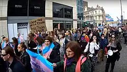 In the same year Liverpool celebrated Capital of Culture, the homophobic murder of 18-year-old Michael Causer brought national attention to the city. Shocked and outraged by the acquittal of Gavin Alker, who was said to have played a critical role in the murder,[85] the LGBT community organised a protest outside Liverpool Crown Court. Headed by the Causer family, protestors reacted angrily amid the backdrop of placards, remembrance photos, and rainbow flags.[86][87]