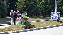 In California in 2009, several grocery chains sought restraining orders, damages and injunctions against LaRouche PAC activists displaying materials related to Obama's health care plan in front of their stores, citing customer complaints.[142][143][144] In Edmonds, Washington, a 70-year-old man from Armenia, grew irate at what he viewed as comparisons of Obama to Hitler. He grabbed fliers and tussled with LaRouche supporters, resulting in assault charges against him.[145]