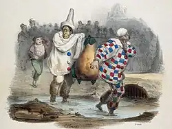 La Caricature morale, politique et littéraire was published from 1830 to 1843. Auguste Audibert was editor and Charles Philipon (1800–1861) was director and main author.[1] Honoré de Balzac and Louis Desnoyers assisted Philipon in writing some of the magazines issues. Primary artists were Honoré Daumier and Jean Ignace Isidore Gérard Grandville with caricature contributions from many artists including Henry Monnier, Alexandre Decamps, Auguste Raffet, Paul Gavarni, Achille Devéria, Auguste Desperret, Eugène Forest, Benjamin Roubaud. The journal was founded after the censorship laws had been relaxed following the July Revolution of 1830 in which Louis Philippe came to power. It covered both politics and art. 251 issues appeared between 1830 and 1835, each of four pages, with two or three lithographs.[2]