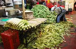 Basic Mexican foodstuffs is the backbone of this markets selling Mexican spices such as epazote,[1] chili peppers fresh and dried of just about every variety, nopals (cactus pads), chicharrones (fried pig skins), corn, and less commonly-encountered products like wild mushrooms.[5][12] One of the few places to find truly authentic Oaxaca cheese in the city. Vendors can be seen tying stacks of banana leaves, cutting spines from nopals, and selling “secret” herbal remedies.[12]