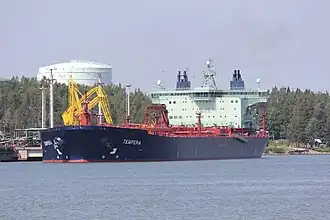 The world's first double acting tanker and the largest 1A Super class oil tanker at that time, Tempera, was delivered from Yokosuka shipyard in late August 2002.[7][17] She was awarded the Ship Of The Year 2002 award by the Society of Naval Architects of Japan (SNAJ).[18] The second ship, Mastera, was delivered in the following year.[4][5] Both ships were named after the company's oil products.[19] While the price of the contract was not made public, the company later admitted that the 60–70 million euro estimate was "quite close to the truth". The ships were owned by ABB Credit, which leased them to Fortum for ten years.[6] The leasing business was later sold to SEB Leasing.