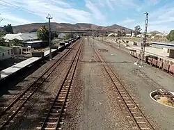 In the 1870s, the government of Prime Minister John Molteno oversaw a massive expansion of the Cape Colony's railway system.[2] The route (chosen by the prime minister with a map, pen and ruler) ran past a farm named Vischkuil-aan-de-Buffelsrivier (fish pond on the Buffalo River) which a man called Stephanus Greeff then bought for the purpose of development.[3]