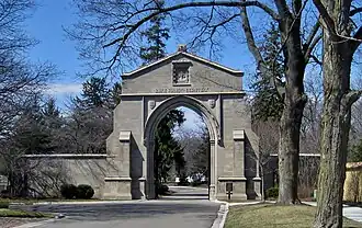 The Barrell Memorial Gate at the entrance of Lake Forest Cemetery on Lake Avenue | |