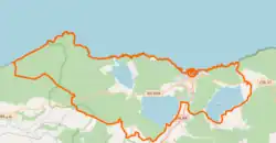 Lake Oubeïra is an endorheic lake located between the town of El Kala, in northeastern Algeria, and the Algerian-Tunisian border, at an elevation of 23 meters. It has an approximately circular shape, a flat bottom covered with grayish silt,[3] and spans an area of 2,000 hectares with an average depth of 1 meter.[2] The site forms part of a large wetland complex that includes a dune system. Despite being endorheic, the lake is connected to the Mediterranean Sea.[1]