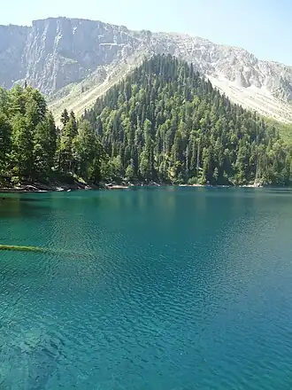 Lake Smaller Ritsa (Georgian: პატარა რიწა), located in Abkhazia, is a lake in the Caucasus Mountains, surrounded by mixed mountain forests and subalpine meadows.