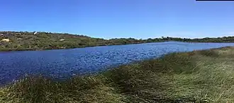The wetland has been classified as pristine and is a significant source of water for fauna in the area. It is surrounded by privately owned property.[4] The excellent condition of the lake is due to the surrounding buffer zone of thick, natural vegetation and the connection of the lake to shallow, fresh groundwater. The water quality is good, with low levels of nitrogen and phosphorus but is not classed as potable. The water levels change seasonally and are dependent on rainfall, surface runoff, and groundwater levels. The shallow lens of fresh water sits above a salt water layer.[3]