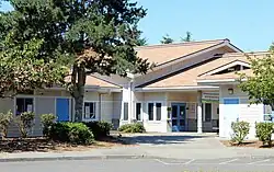 Lakewood School District 306 was formed in 1914 by consolidating three smaller school districts formed between 1891 and 1909. School District 45, the oldest and largest district in the area, was formed on February 28, 1891 and served 40 students at English. School District 65 was formed on November 12, 1892 and served 30 students in the Lake Goodwin area. School District 102, the newest and smallest district in the area, was formed on September 25, 1909 and served 20 students in Smokey Point.[2] The new district served 70 students from grades one to eleven in a three-story schoolhouse and sent its high school students to the nearby Arlington School District beginning in 1958. The schoolhouse was demolished in 1958 and students were moved to a new campus consisting of two wings and eight classrooms, later expanded to include a gymnasium and eleven classrooms by 1966. The campus was renovated into Lakewood Elementary School while older students were moved to an adjacent junior high school, now Lakewood Middle School, in 1972. The school district built its first high school, now Lakewood High School in 1983 and graduated its first senior class the following year.[3][4] The school district re-organized its schools in 1988, converting Lakewood Elementary into Lakewood Primary School, serving grades K–3, and converting the junior high school into Lakewood Intermediate School, serving grades 4–6. A bond issue was passed in 1992 to fund the construction of English Crossing Elementary School, opened in 1995 serving grades 3–5.[5] The primary school was renamed back to Lakewood Elementary and served grades K–2, while the intermediate school was converted back to Lakewood Middle School after an extensive remodeling, serving grades 6–8.[6][7] Cougar Creek Elementary School was completed in 2003 to supplement the two other elementary schools by serving grades K–5.[8][9] All three elementary schools were re-organized in 2011 to serve grades K–5 in all three schools, with Lakewood Elementary retaining its preschool program.[10]