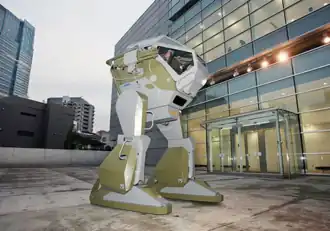 The Land Walker is the first 3.4-meter-tall (11 ft) bipedal robot. Despite its name, it does not actually walk—instead shuffling on wheels hidden under its "feet" at approximately 1.5 km/h (1 mph). It was invented by Masaaki Nagumo and created by researchers who hope to someday create similar robots to be used in the military and law enforcement.[1]