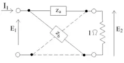 Secondly, if the impedances Za and Zb are duals of one another, so that Za Zb = R02, then further simplification is possible: