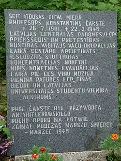 The epitaph of the chairman of the LCC Konstantīns Čakste in Krepa Kaszubska, Poland | |