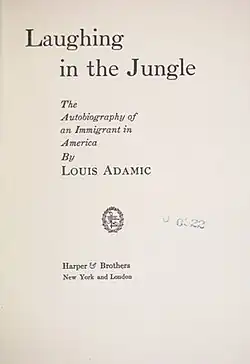 - ^ Louis Adamic, Laughing in the Jungle. The Autobiography of an American Immigrant (New York and London: Harper&Brothers, 1932), ix.