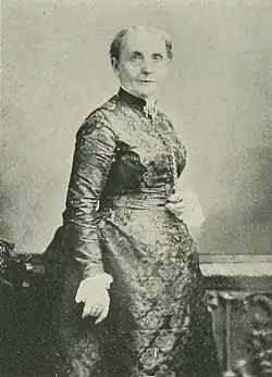In Meadville, her life was devoted to caring for her household and rearing her children, as well as participating in the literary and charitable societies.[3] In 1872, she made a visit to Europe. She arrived home from Europe on December 23, 1873, the day of the great Woman's Temperance Crusade, launched in Hillsboro, Ohio.[6] Meadville was aroused by the great outpouring, and the following March, a mass meeting was called and a temperance organization effected. Very early on, Douglass not only identified herself with the movement, and was an active worker in the cause, but also became a member of the WCTU. For many years, she served as president of the Meadville Union. Her enthusiasm and labors made her name in her own community a synonym for temperance.[4]