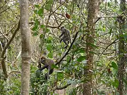 The western hoolock gibbon (Hoolock hoolock) is a higher primate found in India. It is one of the top 25 most endangered primates and one of the six non-human primate species found in Lawachara.[8] In a census in 2007, only 62 individuals in 17 groups were found in Lawachara and in the greater West Bhanugach Reserved Forest.[9] Yet this is the biggest surviving gibbon population in Bangladesh. The Lawachara population is considered of critical importance as it is likely to be the last viable population of western hoolock gibbons that will survive into the next century.[7]