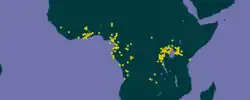 Indicator exilis is most commonly found in forested areas, including tree plantations, primary and secondary forests, and forest shrub mosaics throughout its range in sub-Saharan Africa.[5] It is found from Guinea-Bissau to South Sudan and southwards to Angola and Zambia.[3] This species is often found in close proximity to bee's nests.[5] The species has been found at elevations up to 1600m.[7]
