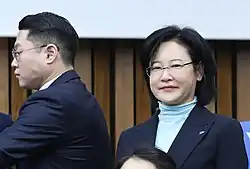Prior to the 2020 election, Lee was a potential candidate for Dongjak 2nd constituency, where the incumbent MP is Na Kyung-won of the United Future Party (UFP).[2] However, some other sources reported that perhaps the ruling party would put the ex-judge to Uiwang-Gwacheon constituency,[4] where held by Shin Chang-hyun who lost at preselection.[6] On 4 March, the Democratic Party has confirmed to nominate Lee as the official candidate for Dongjak 2nd, formally giving her way to contest with the UFP MP.[1] Do Jong-hwan, who led the nomination, praised her as "a judge who really understand the minorities hardworking for fair judgements".[1]