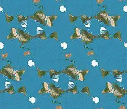 The Lee conformal world in a tetrahedron is a polyhedral, conformal map projection that projects the globe onto a tetrahedron using Dixon elliptic functions. It is conformal everywhere except for the four singularities at the vertices of the polyhedron. Because of the nature of polyhedra, this map projection can be tessellated infinitely in the plane. It was developed by Laurence Patrick Lee in 1965.[1]