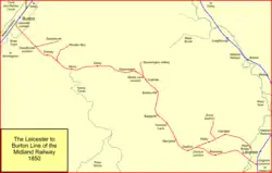 Leicester– Burton upon Trent line | |||||||||||||||||||||||||||||||||||||||||||||||||||||||||||||||||||||||||||||||||||||||||||||||||||||||||||||||||||||||||||||||||||||||||||||||||||||||||||||||||||||||||||||||||||||||||||||||||||||||||||||||||||||||||||||||||||||||||||||||||||||||||||||||||||||||||||||||||||||||||||||||||||||||||||||||||||||||||||||