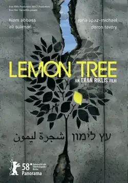 Lemon Tree (Hebrew: עץ לימון, romanized'Etz Limon; Arabic: شجرة ليمون, romanized'Shajaret Leimoun) is a 2008 drama film directed by Eran Riklis, co-written by Suha Arraf. Starring Hiam Abbass, Ali Suliman, Danny Leshman and Rona Lipaz-Michael,[2] it follows the legal efforts of a Palestinian widow to stop the Israeli Defense Minister, her new next door neighbor, from destroying the lemon trees in her family farm. At the same time, she develops a human bond with the minister's wife.[3]