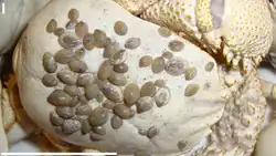 Lepetodrilus sp. from East Scotia Ridge on carapace of large individual of Kiwa sp.