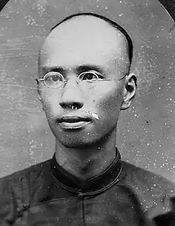 Liao Deshan became also a Baptist minister and earned the license of Christian practice as a medical doctor from the Hong Kong College of Medicine for Chinese (the forerunner of the University of Hong Kong) in 1892. There he met Sun Yat-sen. Notably, of their class of 12 students, he and Sun were the only two who graduated.[3][4][5] Sun Yat-sen played an instrumental role in the overthrow of the Qing dynasty and was appointed to serve as Provisional President of the Republic of China, when it was founded in 1912. When Liao Deshan and Sun Yat-sen returned to Guangzhou, Liao's home became a meeting place for the revolutionaries and Liao became one of the founders of Kuomintang.[6] Liao Deshan believed in universal suffrage, advocated the equality of the sexes, education of women, unbinding women's feet, and abolishing polygamy. He, along with Sun and others, went into exile in Japan in 1908, when the Manchus came after them. In 1890 he found the Pui Ching Middle Schools 培正中學 which is still a thriving institution in Hong Kong and Macau, which insisted on excellence in both Chinese and Math, way ahead of his time. Two Nobel Prize winners in physics were students there. He, unusual in his time, or any time, actually practiced what he preached. When he was a young doctor during the 1880s and 1890s, he went from village to village, offering medical care. When the peasants couldn't pay him, they often asked what they could do for him. He asked if they would allow him to unbind their daughters' feet. Quite often, the peasants allowed him; even though it was dangerous to go against age-old customs, because he had saved lives and spared them pain. When his eldest daughter asked why he was so adamant in unbinding women's feet, he replied: "Because women pass their pains onto their children." Liao Deshan originated the slogan: 'Save China through education'.