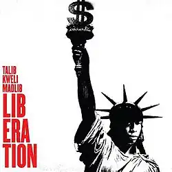 Liberation is a collaborative album by Talib Kweli and Madlib.[1] It was made available as a free download from Stones Throw's Rappcats website, and Kweli and Madlib's MySpace pages for the first week of 2007, beginning New Year's Eve 2007.[2] It was removed about a week later. One cover for the album is an adaptation of a piece by guerrilla artist Banksy, and an alternative cover (given away as a print-ready download) is a collage of Talib Kweli, a dollar sign, and the Statue of Liberty.