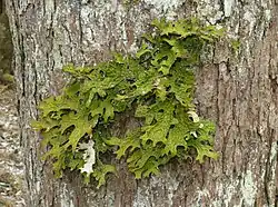 A tree covered with leafy foliose lichens and shrubby fruticose lichens