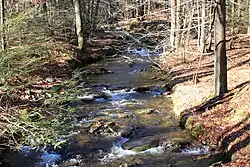 Phillips Creek attempted to flow down the valley of Lick Branch prior to the glaciation of the area. However, a mass of till under Pennsylvania Route 118 diverted it to its present course.[5]