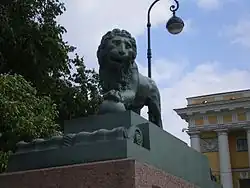 The Lions at the Dvortsovaya pier are two lion sculptures in bronze placed at the Admiralty embankment in Saint Petersburg since 1832. The lions are copies of the late 16th century Italian Medici lions in Florence.
