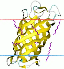 1. ^ Rutten L, Geurtsen J, Lambert W, Smolenaers JJ, Bonvin AM, de Haan A, van der Ley P, Egmond MR, Gros P, Tommassen J (May 2006). "Crystal structure and catalytic mechanism of the LPS 3-O-deacylase PagL from Pseudomonas aeruginosa". Proceedings of the National Academy of Sciences of the United States of America. 103 (18): 7071–6. Bibcode:2006PNAS..103.7071R. doi:10.1073/pnas.0509392103. PMC 1564273. PMID 16632613.