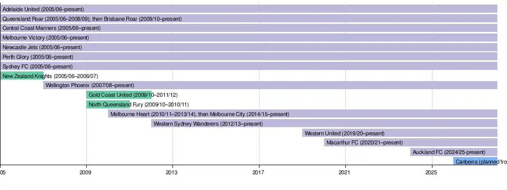 - ^ "A-Leagues set to expand to Canberra and Auckland for 2024-25 season". ABC News. 14 March 2023. Retrieved 21 November 2023.