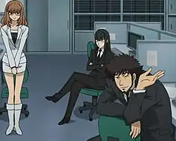The series cast has often be compared with X-Men comics for its handling of supernatural fighters.[24][25][26] Anime News Network felt that while the setting was difficult to understand, the narrative and cast were appealing.[27] This was mostly due to the dual personality from Hei who remains as a mystery in the early episodes he comes across with two dual personalities: the assassin Hei and the transfer student Li. The fight scenes were also the subject of praise of the handling of Contractors battles which contrast the lighthearted tones of parts of the narrative more lighthearted.[28][25] Maxibe Gee from the University of York compared the cast of the anime with the handling noir series or films such as Do Androids Dream of Electric Sheep? and Ghost in the Shell. Although Hei was noted to be similar to noir protagonists, his actions in the first series was noted to be different other heroes from the same genre. The handling of Dolls, most notably Yin, was noted to be a departure from popular series as she becomes one the most important ally to Hei rather than a femme fatale as a result of interacting with Hei across the series, developing a notable humanity in the process.[29]