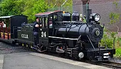Number 24 | Fairbourne Locomotive Works | 2-6-2T | Fairbourne Railway | 1990 | 1990–1992 | Model of Sandy River & Rangeley Lakes Railroad locomotive. The first steam locomotive to be built at Fairbourne. Sold to the Bure Valley Railway in 1992 and re-gauged to 15 in (381 mm) gauge. | Cleethorpes Coast Light Railway, Lincolnshire |