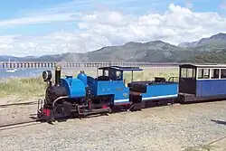 This is a list of past and present rolling stock used on the Fairbourne Railway, a 12+1⁄4 in (311 mm) narrow gauge preserved railway line running for 2 miles (3 km) from Fairbourne on the Mid-Wales coast to Barmouth Ferry on a spit of sand in the Mawddach Estuary opposite the town of Barmouth Welsh: Abermaw. The line was opened as a horse-drawn tramway in 1895 to carry building materials for Fairbourne village. Passenger carriages were introduced shortly afterwards to connect with the ferry to Barmouth. The line was converted to a 15 in (381 mm) steam railway in 1916 and became a successful tourist attraction. The line underwent another gauge conversion in 1985. The track was relayed at 12+1⁄4 in (311 mm) gauge and new rolling stock was introduced.