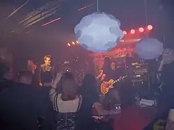Fozzy is an American heavy metal band from San Antonio, Texas. Formed in 1999, the group was originally a cover band known as Fozzy Osbourne, which was soon shortened to simply Fozzy.[1] The band's original lineup included lead vocalist Chris Jericho (under the alias Moongoose McQueen) and four members of rap metal group Stuck Mojo: guitarists Rich Ward (under the alias Duke LaRüe) and Ryan Mallam (under the alias The Kidd), bassist Dan Dryden (under the alias Shawn "Sports" Popp), and drummer Frank Fontsere (under the alias KK LaFlame). The band released its self-titled debut album in 2000, which featured covers of various heavy metal songs.[2] In November 2001, Dryden left Fozzy and Stuck Mojo, with Keith Watson (under the alias Claude "Watty" Watson) taking his place.[3][4]