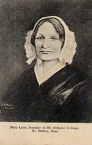 103. ^ "Open Collections Program: Women Working, An address delivered at the fourth anniversary of the Mount Holyoke Female Seminary, South Hadley, Mass. July 29, 1841. 002713572". ocp.hul.harvard.edu. Archived from the original on March 15, 2018. Retrieved March 14, 2018.