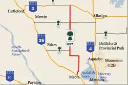 Highway 697 travels from Highway 26 in the RM of Meota No. 468 to near Turtle View at Turtle Lake in the RM of Parkdale No. 498.[75] It is located in the north-western region of Saskatchewan, west of North Battleford.