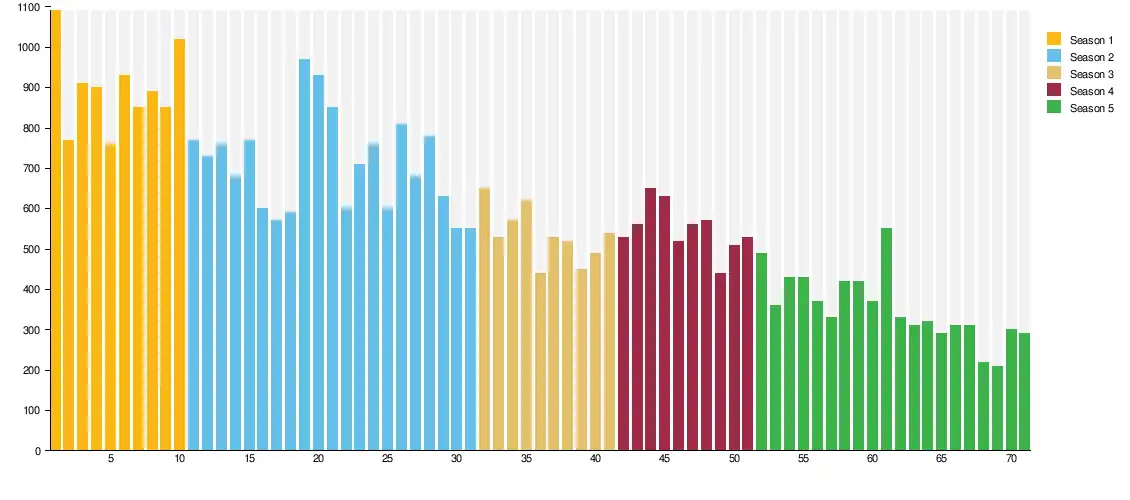 | 5 | 20[6] | 10 | March 13, 2017 | May 22, 2017 |