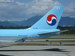 - Korean Air: Taegeuk, the national symbol of South Korea. Light blue all over the upper half of the aircraft, with a thick silver line separating it from the white lower half.