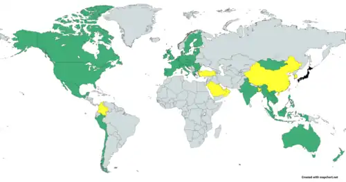 India has bilateral agreements with the following countries and blocs:[1][34][35][36]