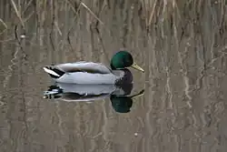 The swans, ducks and geese are medium to large birds that are adapted to an aquatic existence with webbed feet and bills which are flattened to a greater or lesser extent. In many ducks the male is colourful while the female is dull brown. The diet consists of a variety of animals and plants. The family is well represented in Wales, especially in winter when large numbers visit from Greenland, Scandinavia and Russia.[2]