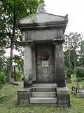 The cemetery, opened in 1863, was the third cemetery in the monastery complex, after the original Lazarevskoe Cemetery in the 1710s, and the Tikhvin Cemetery in 1823.[1] It became known as the Nikolskoe after the construction of the Church of St. Nicholas between 1868 and 1871 to the design of diocesan architect Grigory Karpov.[1][2] From its inception burial there was restricted to the elite of society, the monastery's Spiritual Council noting that "the Lavra cemetery is not open to everyone, as are the city cemeteries, but only a few persons from the government service and persons with honorary titles are buried here."[2] Part of the cemetery also served as the burial site for the Monastery's monks and the metropolitans of St. Petersburg, leading to the name Bratskoe (Russian: Братское), or "Brotherhood" section.[3] Wealthy patrons commissioned large chapels and crypts, with elaborate decorations and reliefs from prominent artists such as Nikolay Laveretsky, Ivan Podozerov, Robert Bach and Ivan Schroeder.[1]