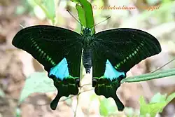 Amongst swallowtails, endemism is found only in the Western Ghats. Notable endemics are the southern birdwing (Troides minos), Malabar banded swallowtail (Papilio liomedon), Malabar raven (Papilio dravidarum), Malabar rose (Pachliopta pandiyana) and the Malabar banded peacock (Papilio buddha).[6]