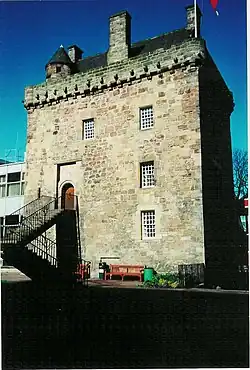 | Cramond Tower | Tower house | 15th century | NT189767 | This square-plan tower was built at the end of the 15th century for the Bishops of Dunkeld.[14] It later passed to the Douglas family then to James Inglis, who extended the tower and installed larger windows. In 1680 Cramond House was built nearby to replace the tower, which was subsequently abandoned, falling into ruin by the 19th century. It was restored as a home in 1979–1981 and remains a private residence.[15] |