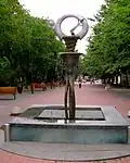 There is a sculpture made of stainless steel with dimensions 2,2 x 2,0 meters, symbolizing the water flower Nymphaea in the middle of the fountain. The fountain was out of order for a long time before being restored by Paming on 1 May 2003. The fountain is administered by Paming. | |