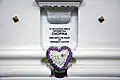 Polish composer Frédéric Chopin died in 1849 at the age of 39. His heart was removed from his corpse, immersed in alcohol, and smuggled into Poland by his sister.[37] It was given to Warsaw's Holy Cross Church and lay in the catacombs for years, until a journalist discovered it and it was transferred to the upper part of the church in 1879. During World War II, Nazis took possession of his heart, which was kept by the SS. It was returned and hidden in Milanowek, before being transferred back to the Holy Cross Church in a grand procession. It is interred in a pillar in the church in Warsaw.[38] | ||