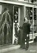 In 1888, anatomist Rufus B. Weaver of the Hahnemann Medical College extracted and mounted a complete cerebrospinal nervous system. The nervous system is thought to belong to Harriet Cole, a black woman who was a custodian at the college and died of tuberculosis at around the age of 35.[39] Weaver spent five months dissecting her body, wrapping the nerves in gauze before coating the strands with white paint and shellack. The finished nervous system was exhibited at the 1893 World's Columbian Exposition in Chicago where it received the blue-ribbon Premium Scientific Award.[40] | ||